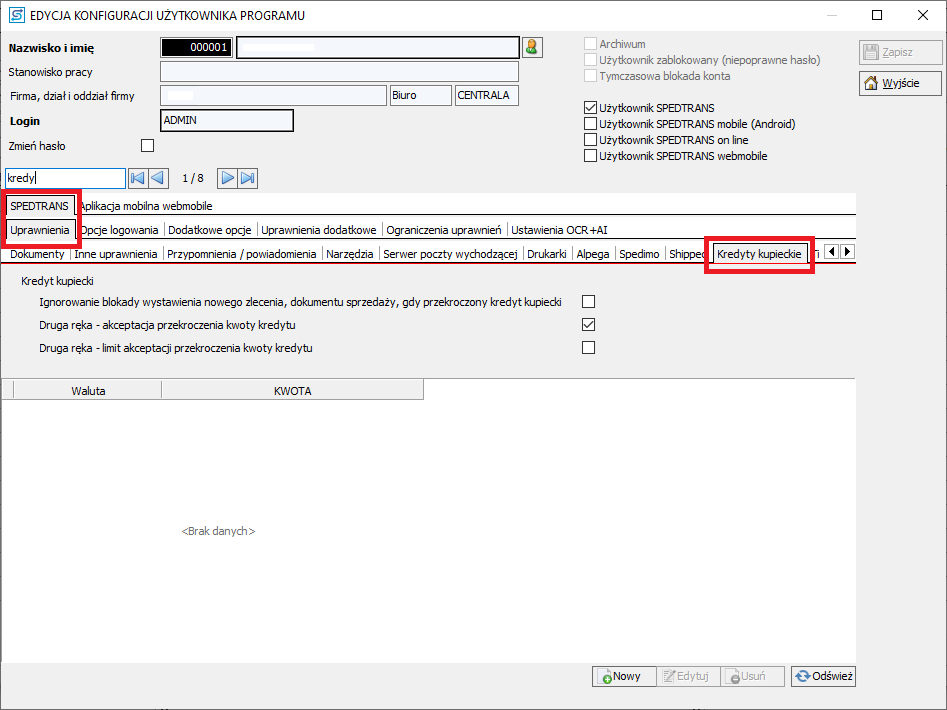 Wyłączenie weryfikacji kredytu dla danego użytkownika